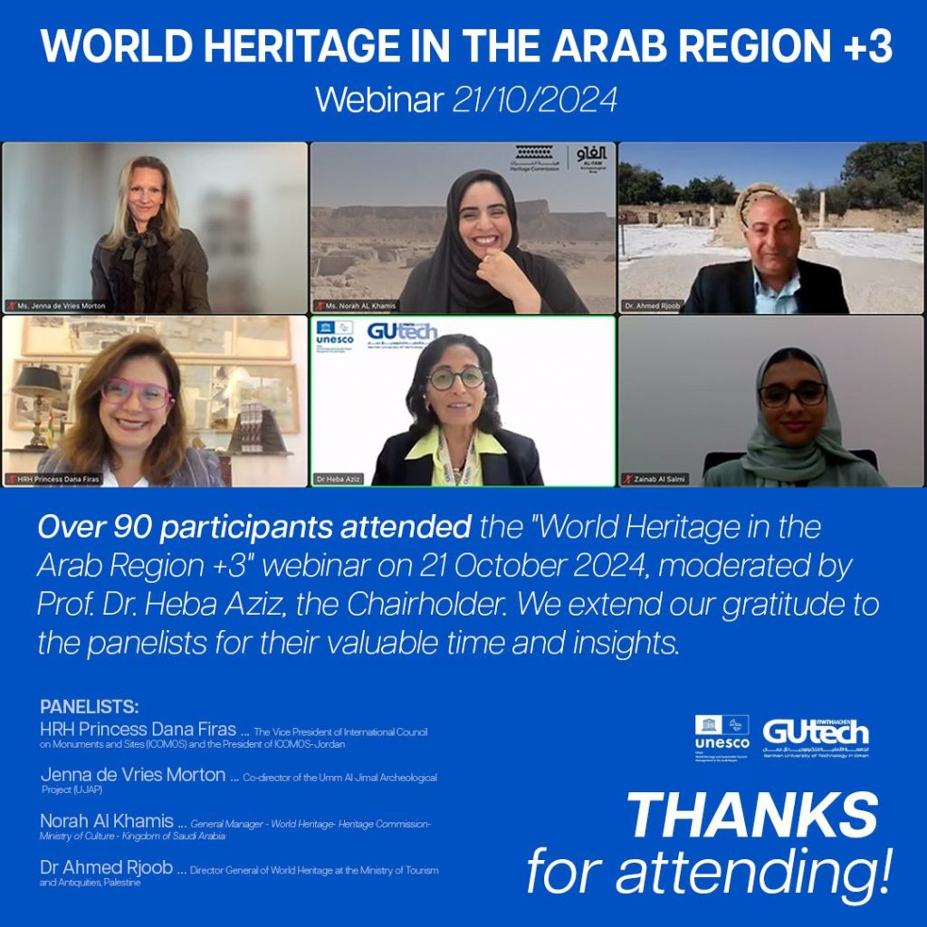 Over 90 participants joined the World Heritage in the Arab Region +3 webinar that took place on 21 October 2024.